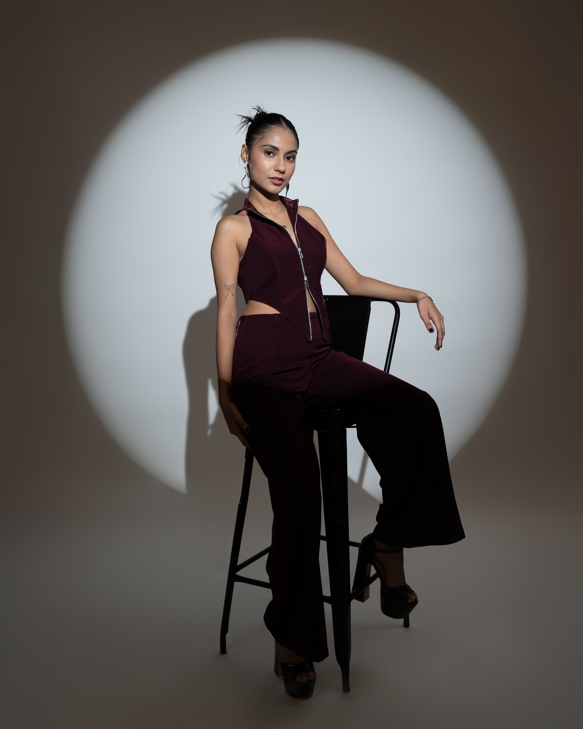 Elevate your wardrobe with this two-way zipped high-neck top—a versatile piece designed for both function and style. Featuring a unique front cut that runs from the waist to the center, it allows endless styling possibilities. Keep it zipped up for a polished, confident look in public, or unzip for a bold, chic vibe when you’re heading out to the club or any after-hours scene. A statement piece that transitions effortlessly from day to night